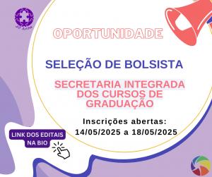 A bolsa tem como objetivo apoiar atividades acadêmicas e administrativas, contribuindo para a formação dos estudantes e o funcionamento da Secretaria de Graduação. Os selecionados atuarão por 16 horas semanais, em turnos a serem definidos conforme demanda.