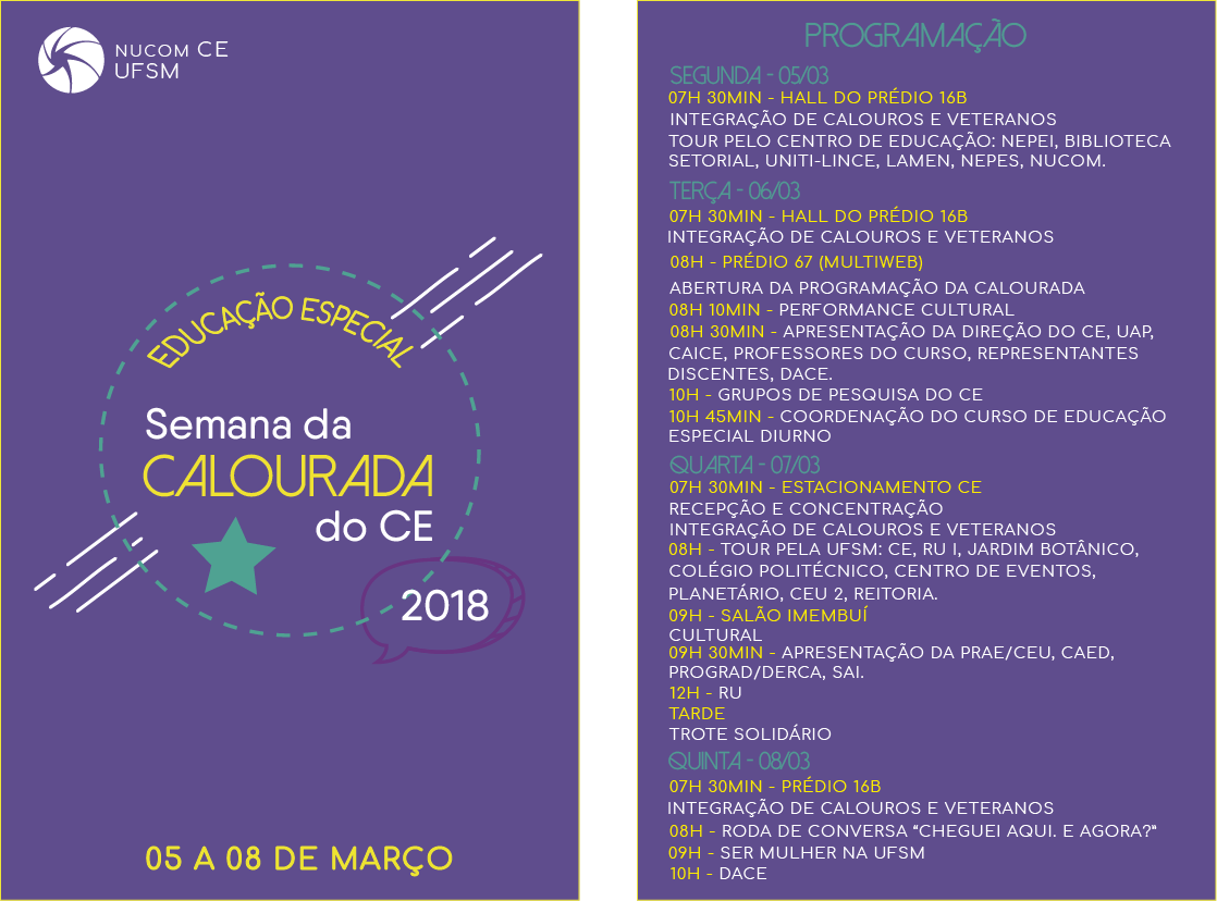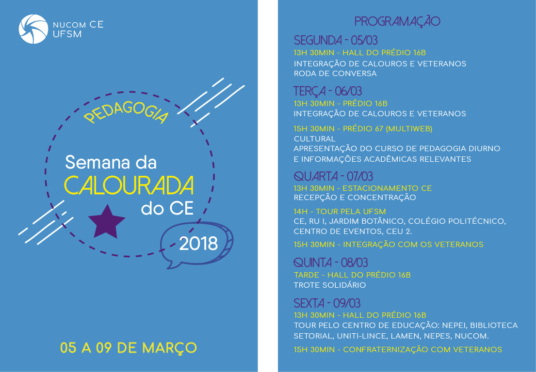 Suporte a atividades de informática no CEA Direção do Centro de Educação está disponibilizando o bolsista MAIRON P. KLIMECK ,que ficará no hall do Prédio 16 B, de segunda [...]