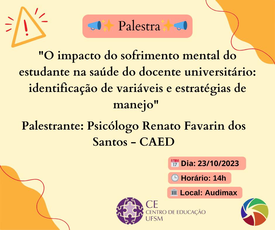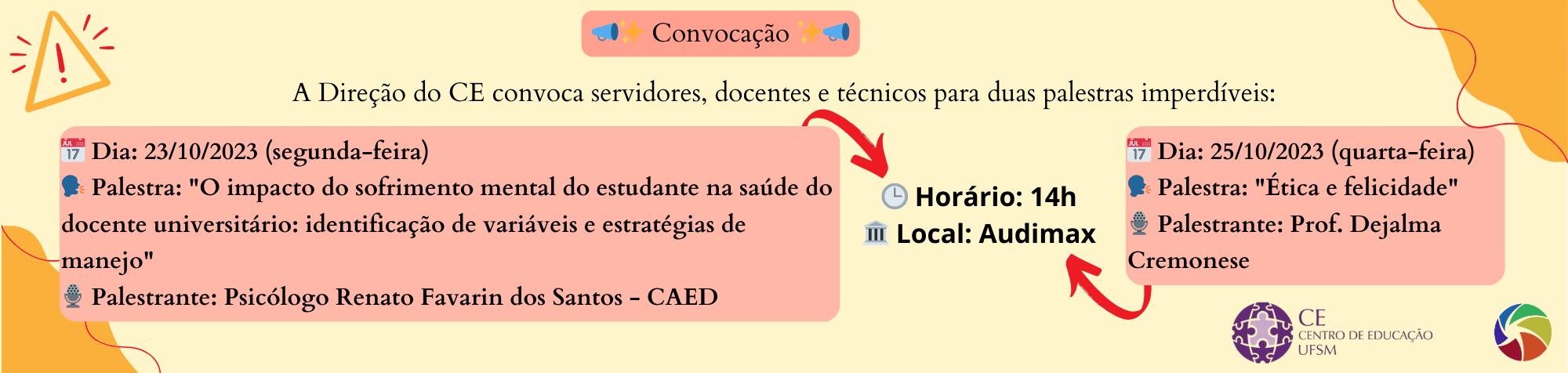 De ordem da Direção do Centro de Educação, temos o prazer de convocar todos os servidores docentes e técnicos do CE para duas palestras imperdíveis!