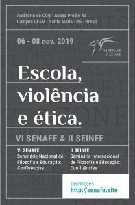 O tema do seminário “Escola, Violência e Ética” tem por objetivo congregar pesquisas que abordem o tema da violência relacionado à Educação, na perspectiva Ética. Pretende-se promover o diálogo com a comunidade escolar, bem como com acadêmicos e professores pesquisadores da graduação e da pós-graduação, tendo em vista que o Grupo de Pesquisa Formação Cultural, Hermenêutica e Educação (GPFORMA), o Grupo de Pesquisa Filosofia, Cultura Juvenil e Ensino Médio (FILJEM) e o Grupo de Pesquisa Racionalidade e Formação (RACIOFORM) investigam, a partir da complementariedade entre epistemologia e hermenêutica, as narrativas oriundas das vivências da escola básica e a ausência, na educação, em trabalhar com situações de conflito.