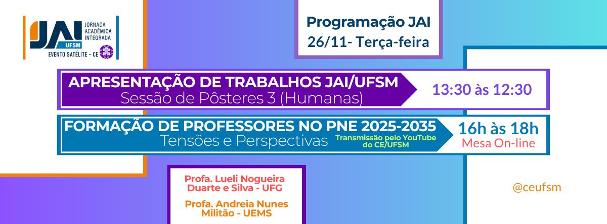 Apresentação de trabalhos JAI/UFSM – Sessão de Pôsteres (Humanas) / Mesa On-line Formação de Professores no PNE 2025-2035: Tensões e Perspectivas