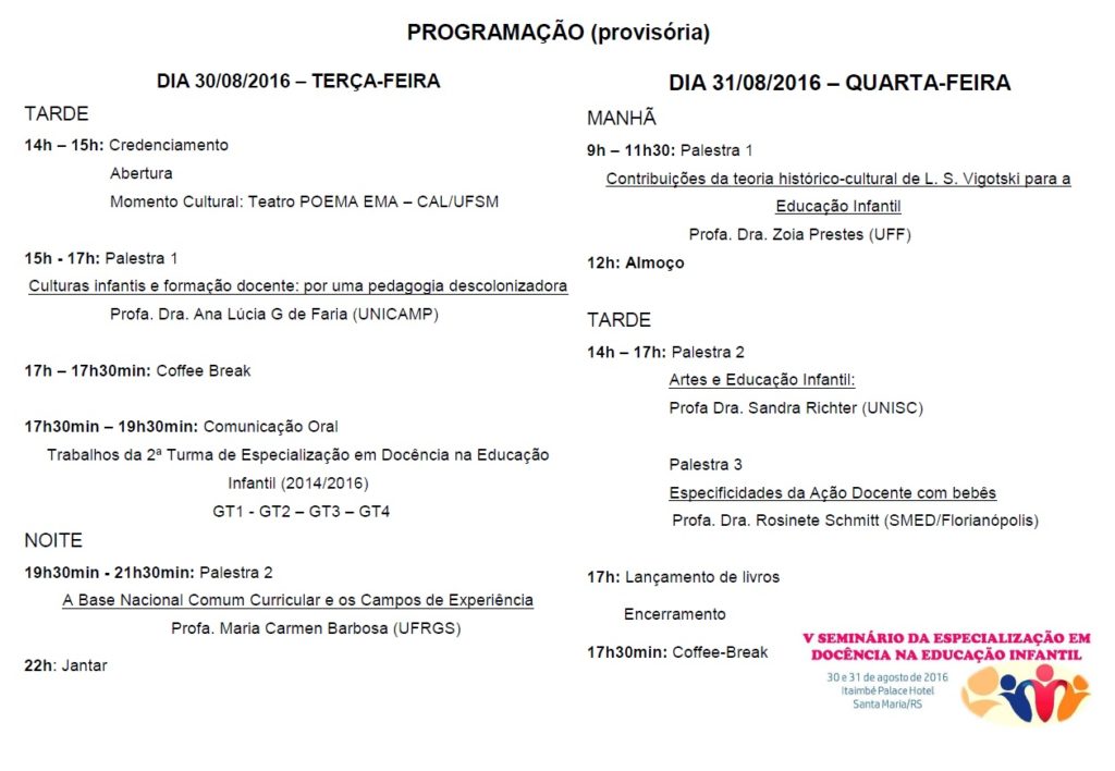 V Seminário da Especialização em Docência na Educação Infantil