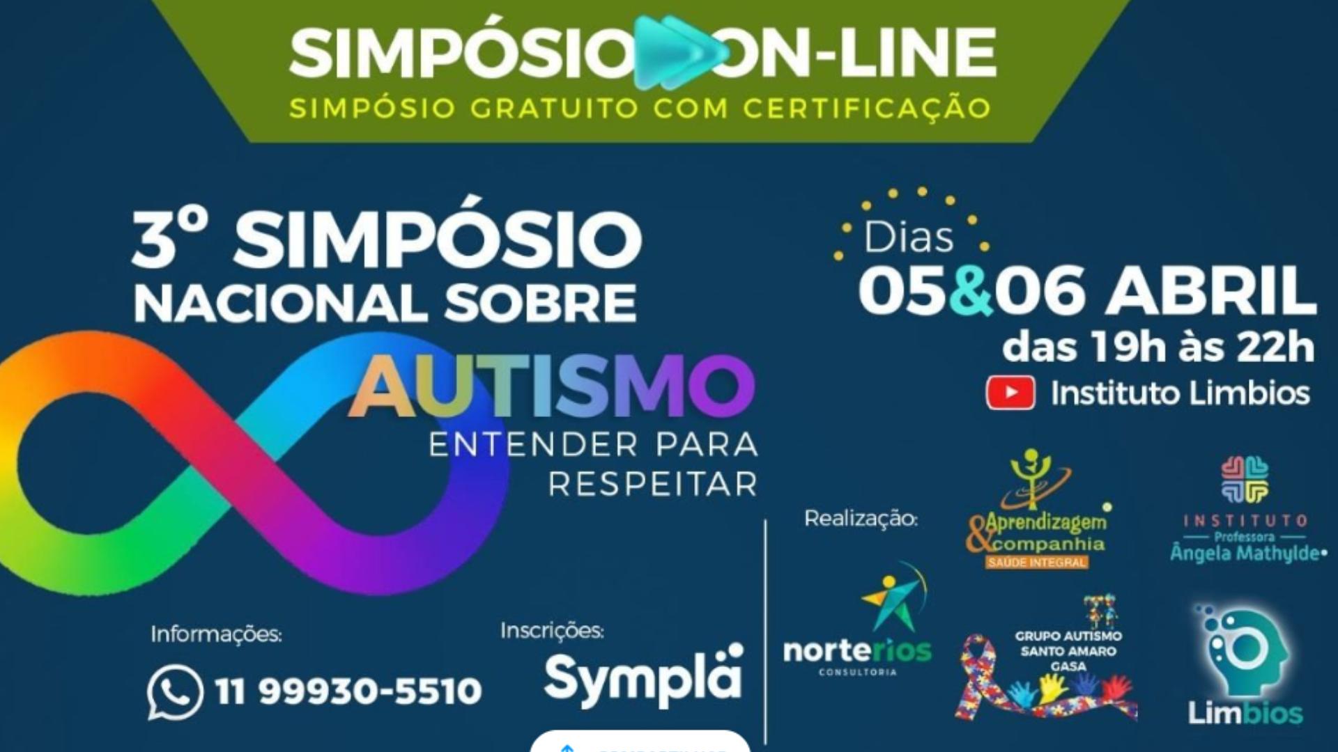 Pensando na possibilidade de discutirmos meios de estimulação e inclusão, de pessoas com TEA, tanto no ambiente escolar como na sociedade em geral, o Grupo Autismo Santo Amaro, o Instituto Professora Angela Mathylde, o Instituto Limbios e a Norte Rios, promovem, nos dias 05 e 06 de abril de 2023, o III Simpósio Nacional sobre Autismo: entender para respeitar, com a participação de vários terapeutas e de pessoas dentro do TEA, discutindo a importância da intervenção multidisciplinar no desenvolvimento dos indivíduos com o Transtorno do Espectro Autista.