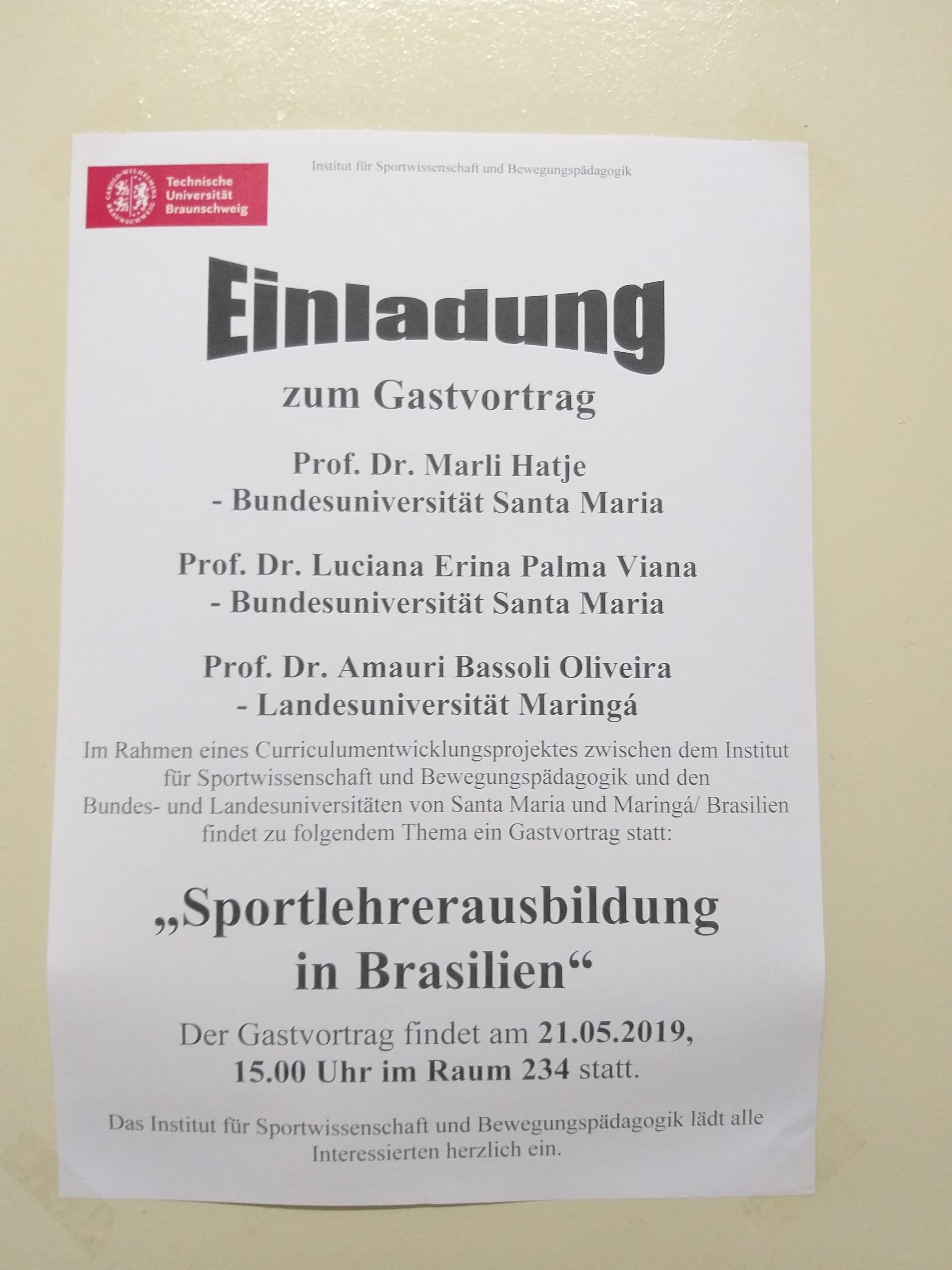 Nessa Instituição, junto ao Instituto de Ciência do Esporte e Pedagogia do Movimento, ministraram a palestra “Formação Profissional em Educação Física no Brasil”. Nas outras três Universidades (Hildesheim, Osnabrück e Hannover), conheceram as instalações físicas do curso de Educação Física, participaram de reuniões acadêmicas nas quais os gestores apresentaram, explicaram o funcionamento do currículo em Módulos e mantiveram contato para futuras parcerias/intercâmbios acadêmicos