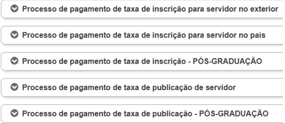 Para receber este auxílio o servidor deverá preencher o formulário de requerimento de pagamento de taxa de inscrição/publicação e anexar os demais documentos exigidos (folder do evento, aceite de artigo, tabela com os valores, etc.). Logo após, deverá abrir o processo eletrônico via PEN-SIE e encaminhar à chefia imediata que, após emitir o parecer, encaminhará ao NECO para a efetuação do pré-empenho.