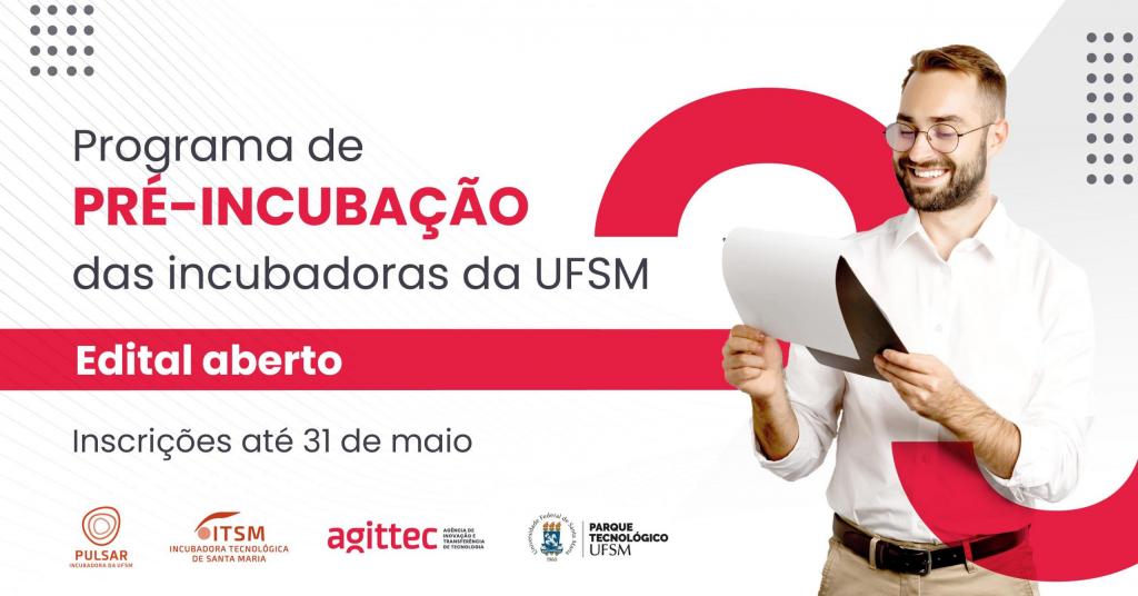 A 7ª edição do Programa de Pré-Incubação da Aggitec das incubadoras da UFSM está com as inscrições abertas até o dia 31/05/2022. O Programa proporciona oportunidade de apoiar empreendedores que estão na fase que antecede a criação da empresa. A Pré-incubação acontecerá de forma híbrida, em um curso com 60h de duração, incluindo palestras, workshops e mentorias com profissionais de mercado.