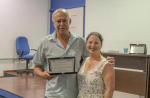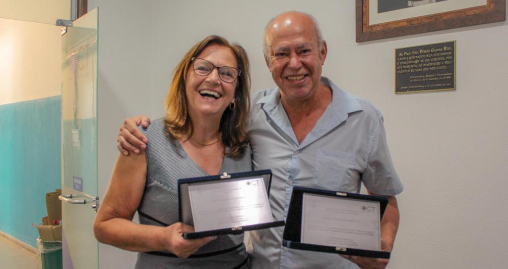 Na reunião, as homenagens foram entregues a Ney e Nilza por Elisete Kronbauer, chefe da Subdivisão de Projetos, e João Helvio Righi de Oliveira, prof° do Departamento de Engenharia de Produção e Sistemas, respectivamente.