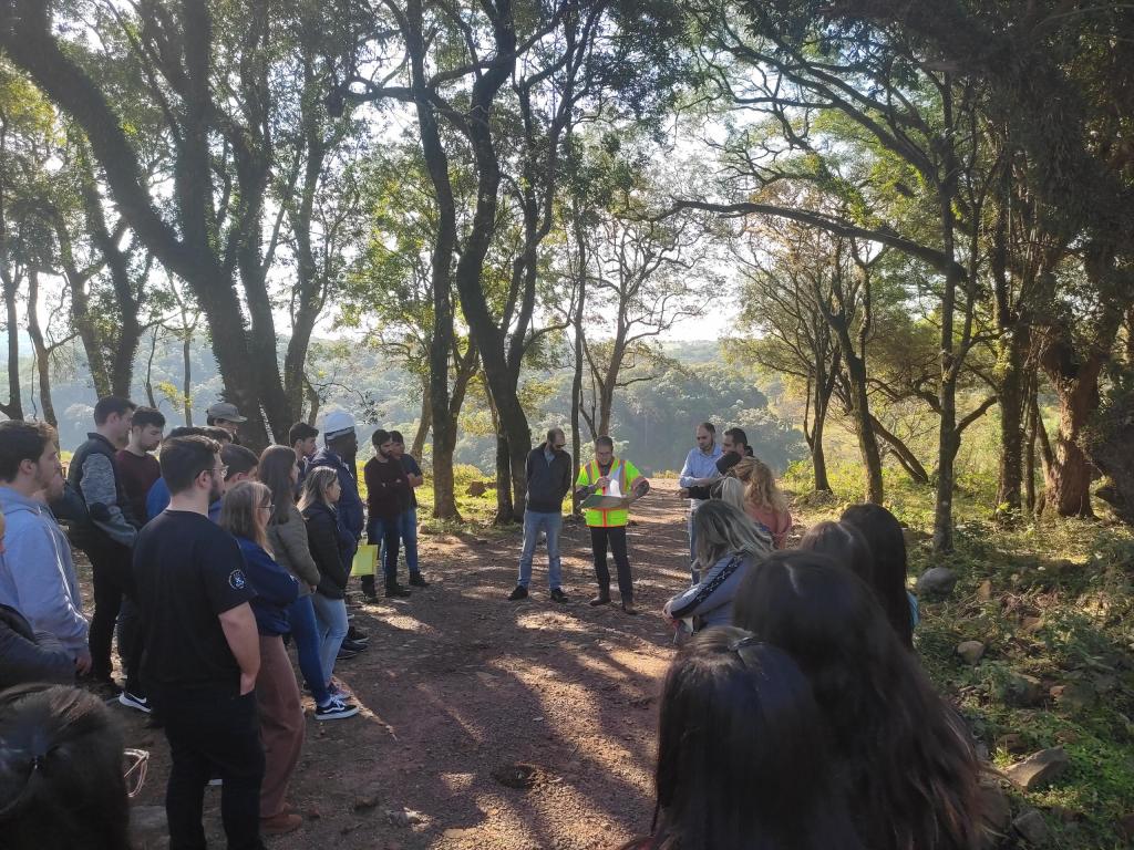 Durante a visita, o engenheiro Felipe Saldanha, da empresa Continental, responsável pelo andamento das obras, detalhou aspectos técnicos e apresentou os desafios geológicos, hidrológicos e de uso do solo que a empresa enfrentou ao longo da obra, além dos estudos preliminares e de execução realizados. Essa visita proporcionou aos alunos uma experiência prática de situações reais encontradas no campo de obra, onde puderam ver de perto um estudo preliminar com o aparelho de deflectômetro de impacto, usado para avaliar a condição e a capacidade de suporte da sub-base já executada in loco, assim como detalhes da alocação de estacas, escolha de áreas de empréstimo de terras e bota-fora, e construção de obras de drenagem e taludes da rodovia, de caminhos de serviço.