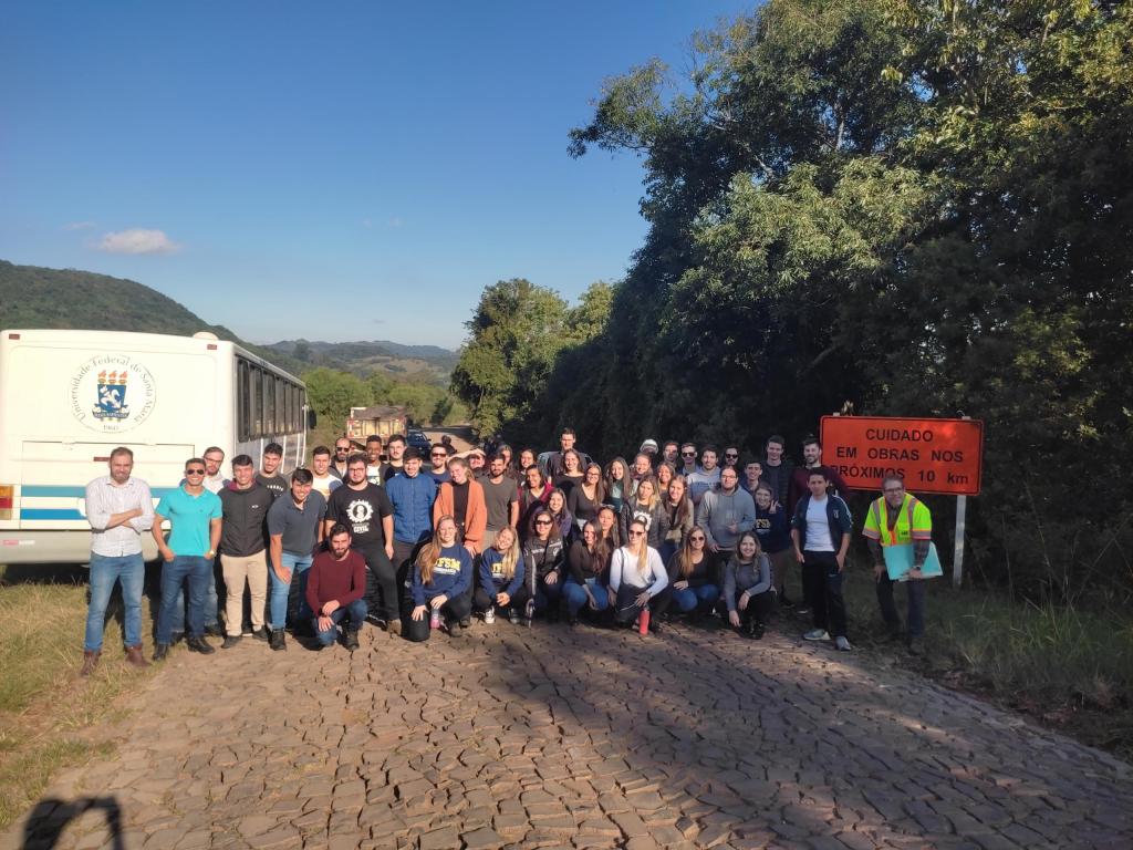No dia 30 de maio, o Laboratório de Mobilidade e Logística (LAMOT) organizou uma visita técnica para os alunos do curso de Engenharia Civil nas obras de adequação da rodovia ERS 516, que conecta Santa Maria a São Martinho da Serra. As turmas de Rodovias I e II, Mecânica dos Solos e Materiais de Infraestrutura tiveram a oportunidade de observar de perto detalhes do projeto da rodovia e o andamento das obras promovidas pelo DAER/RS. A atividade se enquadra no projeto de ensino “Aplicação de metodologias ativas e experiências inovadoras de ensino-aprendizagem tecnológico”, coordenado pelo prof. Dr. Alejandro Ruiz Padillo, do Departamento de Transportes. O projeto propõe visitas a obras e empresas relacionadas à área em ambiente real.