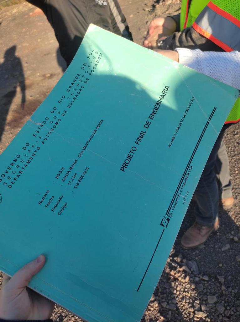 O engenheiro Jader Barbosa Rodrigues, representante do DAER, também apresentou os projetos da rodovia, trazendo detalhes técnicos e destacando os requisitos exigidos pela Autarquia estadual para a execução da obra, além de compartilhar os documentos técnicos finais de execução e de seções transversais impressos, oferecendo uma abordagem prática do que os alunos executam nas disciplinas relacionadas.