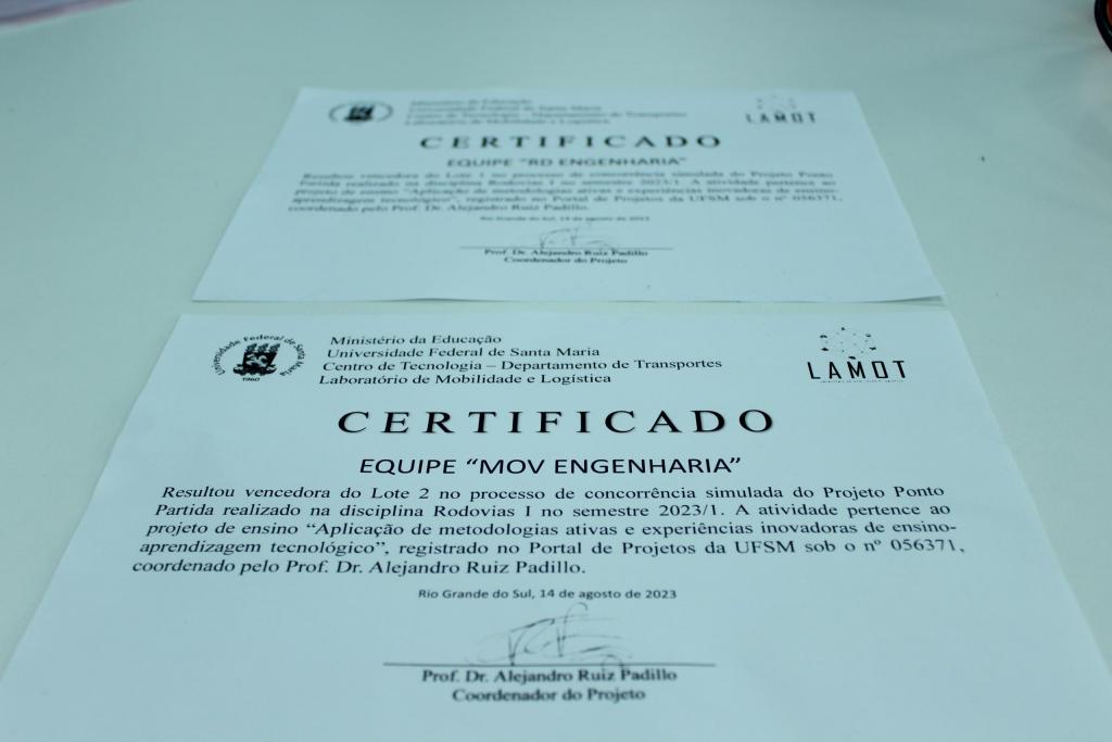 No dia 14 de agosto, durante a aula da disciplina de Rodovias 2 ministrada pela professora Tatiana Cureau Cervo, o professor Padillo anunciou os vencedores dos Lotes, e ambos foram atribuídos aos alunos da UFSM. A equipe “Equipe RD Engenharia”, do Lote 1, era composta por: Arthur da Costa Tonin, Eluize Nascimento de Oliveira, Enzo Dantas Rossi e Mateus Haas. A equipe “Equipe MOV Engenharia”, do Lote 2, era composta por: Michéli Beatriz Lenz e Verenice de Oliveira Abbadie. Como prêmio, os dois melhores lotes da UFSM e os dois melhores lotes da UFRGS terão um um livro publicado pela editora da UFRGS contendo um capítulo para cada lote. Além disso, os discentes da UFRGS receberam um prêmio em dinheiro proveniente de patrocinadores, metade desse valor foi doado para uma entidade beneficente.
