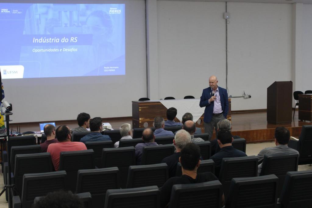 O Centro de Tecnologia da Universidade Federal de Santa Maria (UFSM) foi palco de um importante debate sobre o futuro da indústria gaúcha. Na tarde desta segunda-feira, 2 de dezembro, o auditório Wilson Aita recebeu a palestra “A Indústria Gaúcha e seus Desafios”, ministrada por Paulo Herrmann, CEO da Federação das Indústrias do Rio Grande do Sul (FIERGS) e ex-CEO da John Deere.
