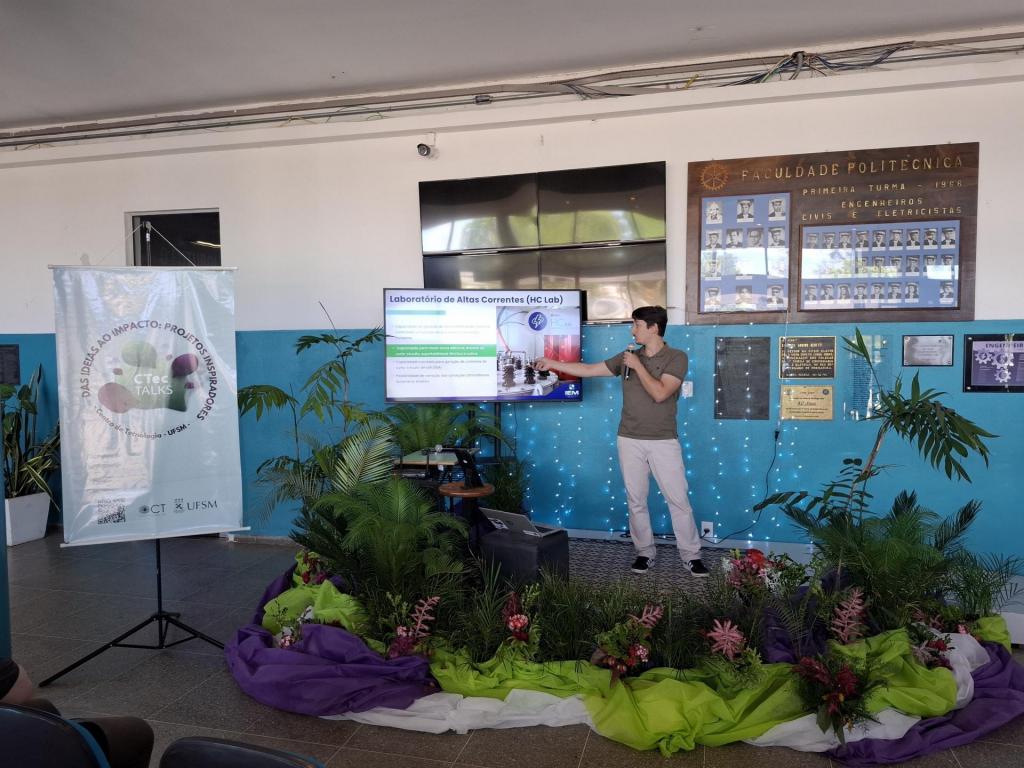 Para Andrey Pereira, estudante de Engenharia de Telecomunicações, apresentar sua pesquisa no CTec Talks também foi uma experiência positiva. “Fiquei satisfeito em poder mostrar um pouco do trabalho prático e da relevância científica do nosso projeto”. O trabalho “Metodologia para Avaliação de Arco Elétrico CA/CC no Sistema Elétrico incluindo Ferramenta para Cálculo de Energia Incidente” destaca a importância da Energia Incidente (EI) para a segurança no setor elétrico. A pesquisa, desenvolvida no Laboratório de Altas Correntes (HC Lab/UFSM), envolve ensaios controlados para medir com precisão o calor gerado por arcos elétricos.