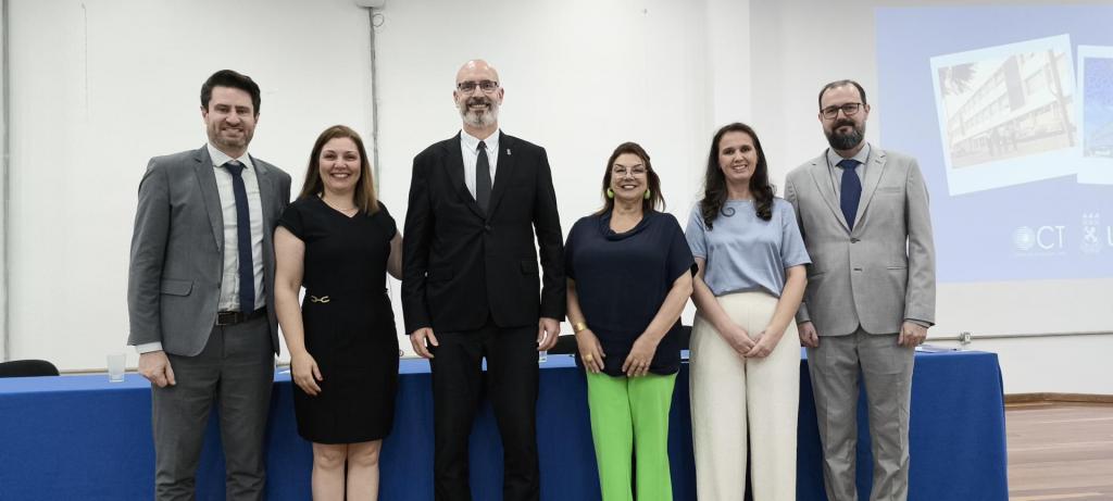 O Centro de Tecnologia (CT) da Universidade Federal de Santa Maria (UFSM) vive um momento de renovação e continuidade. Na tarde desta segunda-feira, 08 de dezembro, em cerimônia marcada por discursos emocionantes, ocorreu a posse da nova Direção do Centro, que estará à frente da unidade no quadriênio 2025–2029.