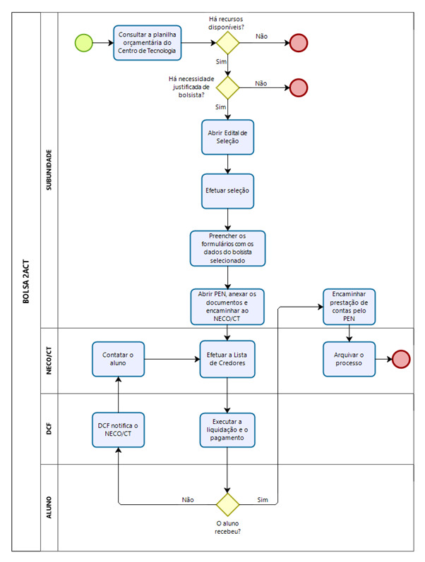 A bolsa 2ACT destina-se a alunos que desenvolvam algum trabalho administrativo junto às subunidades do Centro de Tecnologia.