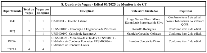Edital completo em: https://www.ufsm.br/app/uploads/sites/375/2025/09/Edital-06.2025-Monitoria-CT.pdf