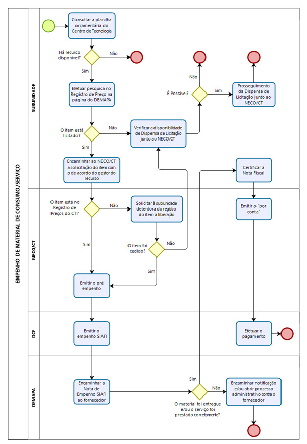 Fluxograma Empenho de Material de Consumo/Serviço: