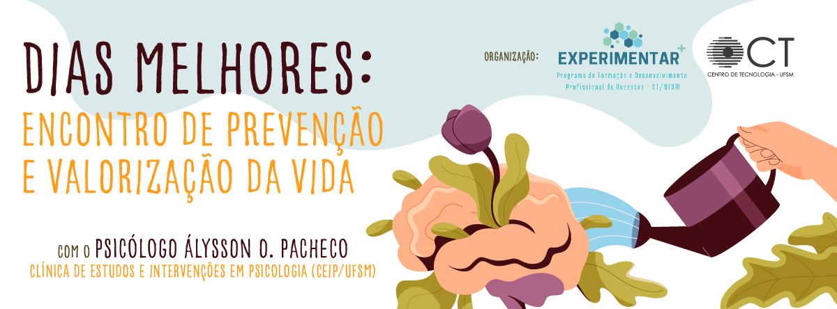 O programa EXPERIMENTAR+, que tem como objetivo promover formação continuada aos professores, para proporcionar o desenvolvimento profissional docente do CT, está promovendo o encontro de prevenção e valorização da vida com a mediação do Psicólogo Álysson O. Pacheco – Clínica de Estudos e Intervenções em Psicologia  – CEIP/UFSM.
