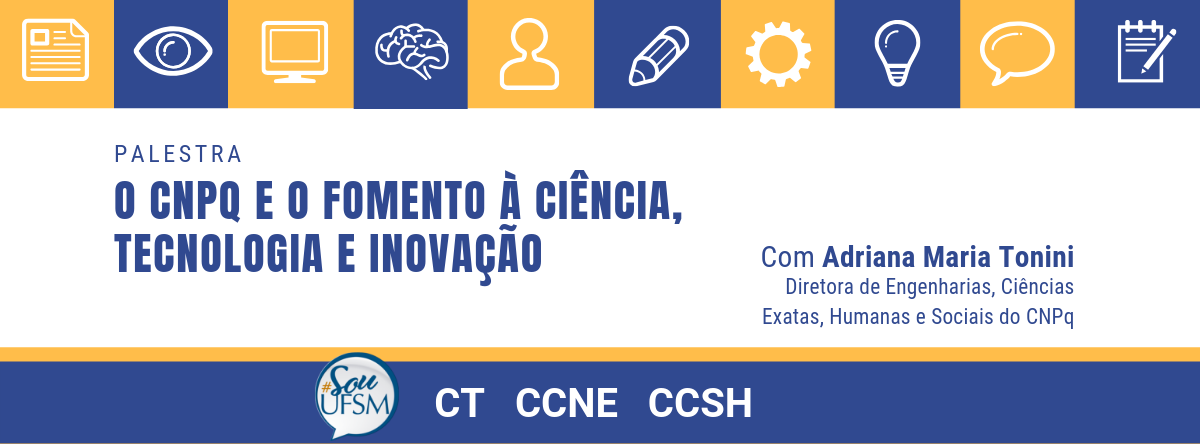 A Universidade Federal de Santa Maria sediará a palestra “O CNPq e o fomento à Ciência, Tecnologia e Inovação”, nesta terça-feira, 14 de maio, às 15h30, no auditório Wilson Aita.