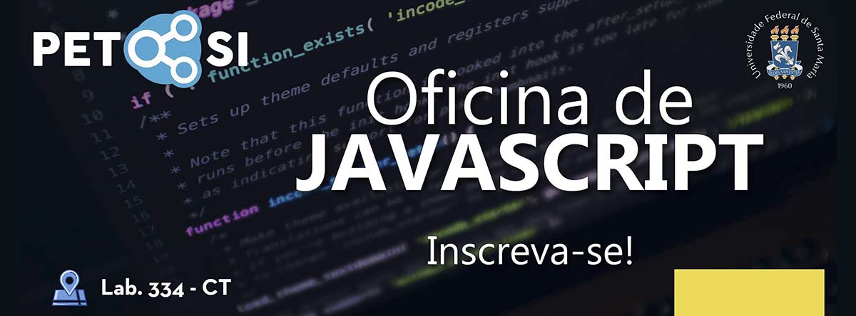 O PET-SI convida para mais uma oficina, desta vez com o foco voltado ao Javascript. Serão 5 dias (04, 05, 10, 11 e 12 de setembro) abordando conceitos e a prática desta linguagem que pode ser útil das mais diversas formas.