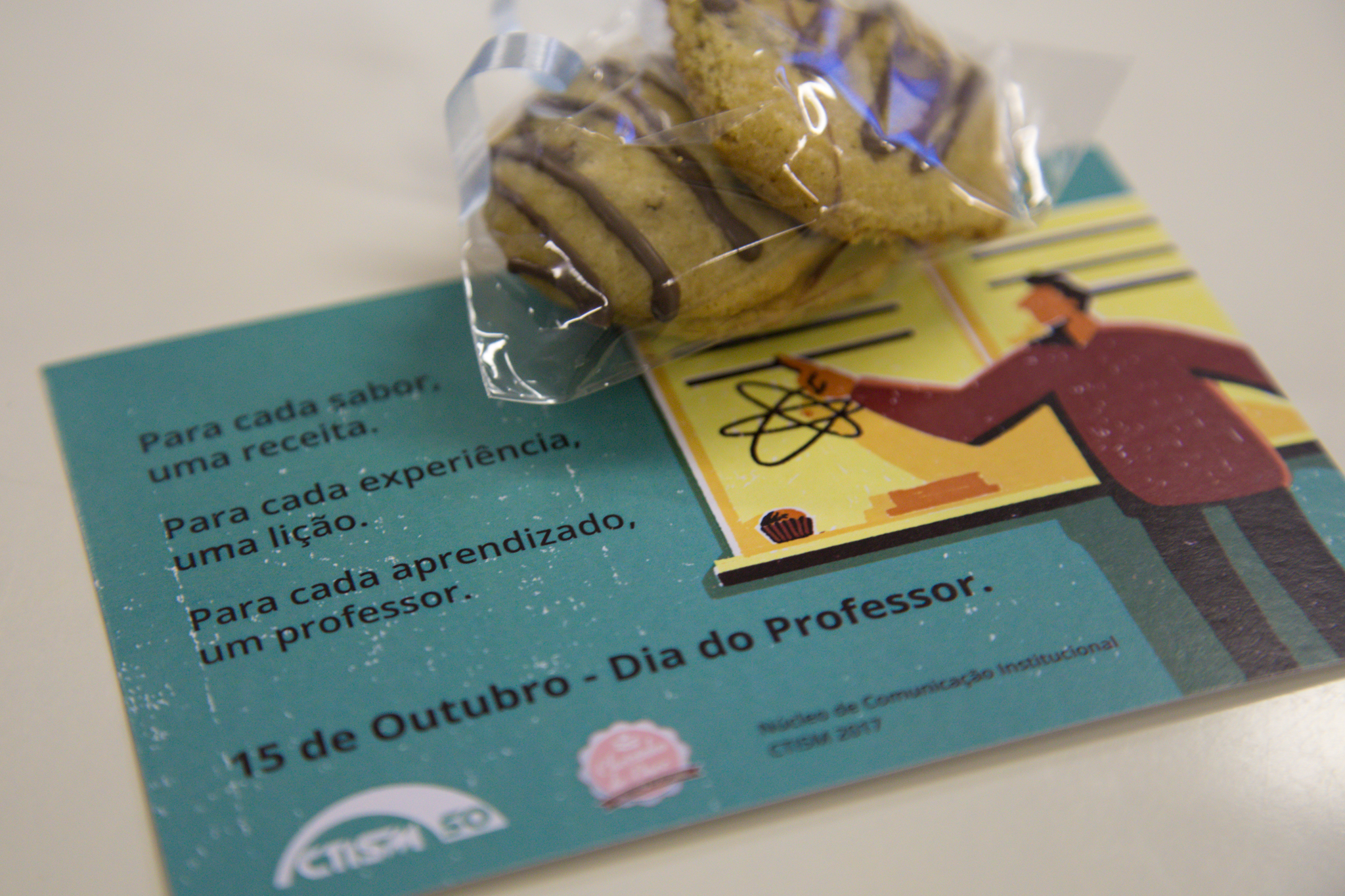 Cartão distribuído aos docentes do CTISM na segunda (16) com cookies.