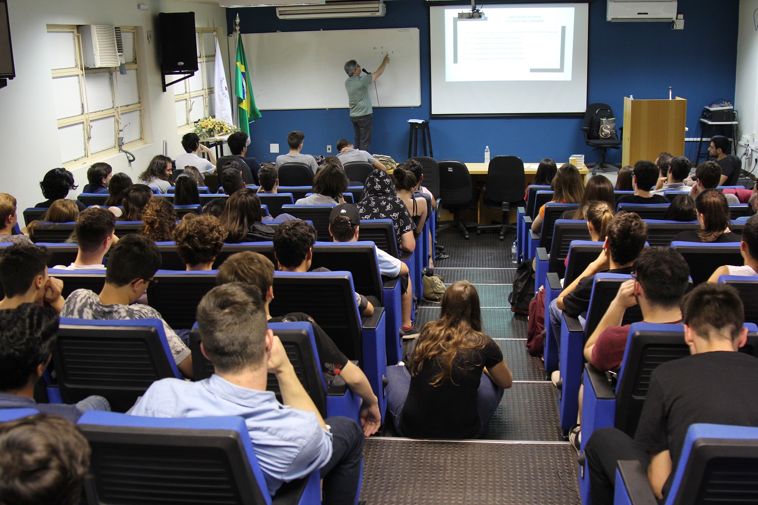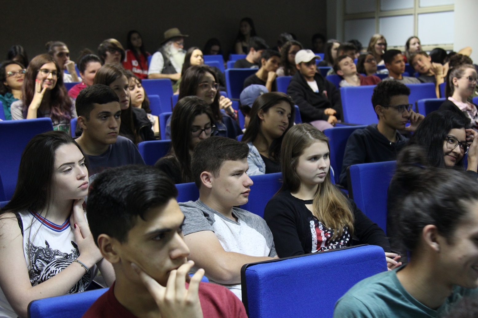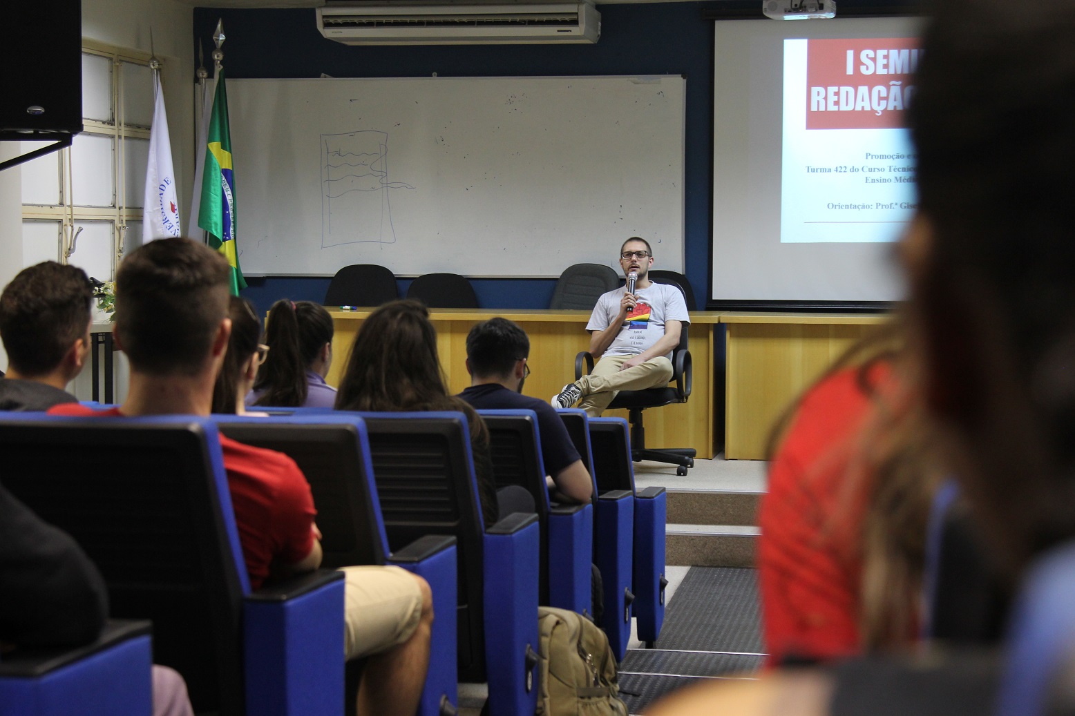 O Seminário Redação em Foco, organizado pela turma 422, foi um trabalho avaliativo da disciplina de Língua Portuguesa. Os alunos da turma planejaram todos os aspectos do evento, como a programação, o coffee break e a divulgação, sob a orientação da professora Gisele Jacques Holzschuh. Estudantes das demais turmas de segundo e terceiro ano dos cursos integrados assistiram ao seminário.