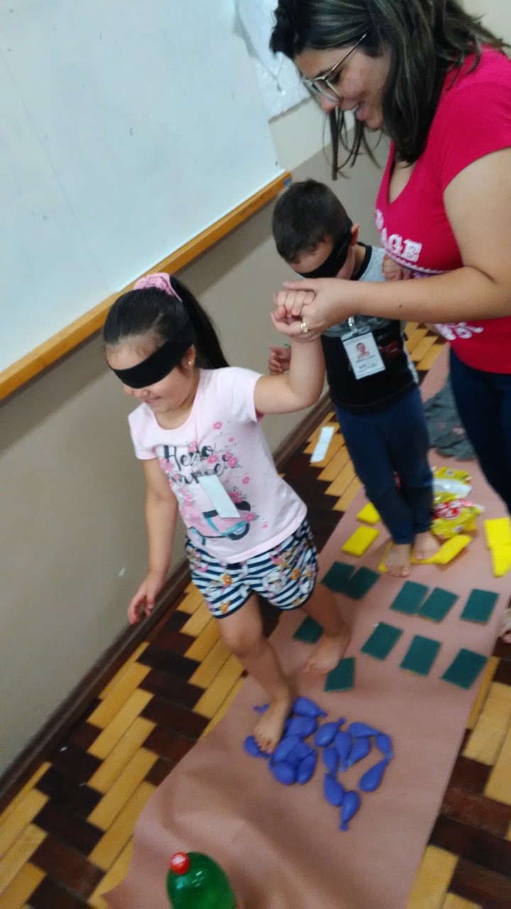 O circuito consistiu na organização de diferentes materiais, e o participante deveria percorrer o espaço de olhos vendados, apenas tocando ou pisando nas diferentes produções. A proposta foi realizada como encerramento do ano letivo na disciplina de Artes, e teve como principal objetivo dialogar sobre a participação do público em propostas da arte contemporânea, explorar possibilidades sensoriais e proporcionar interação entre os estudantes da Instituição.