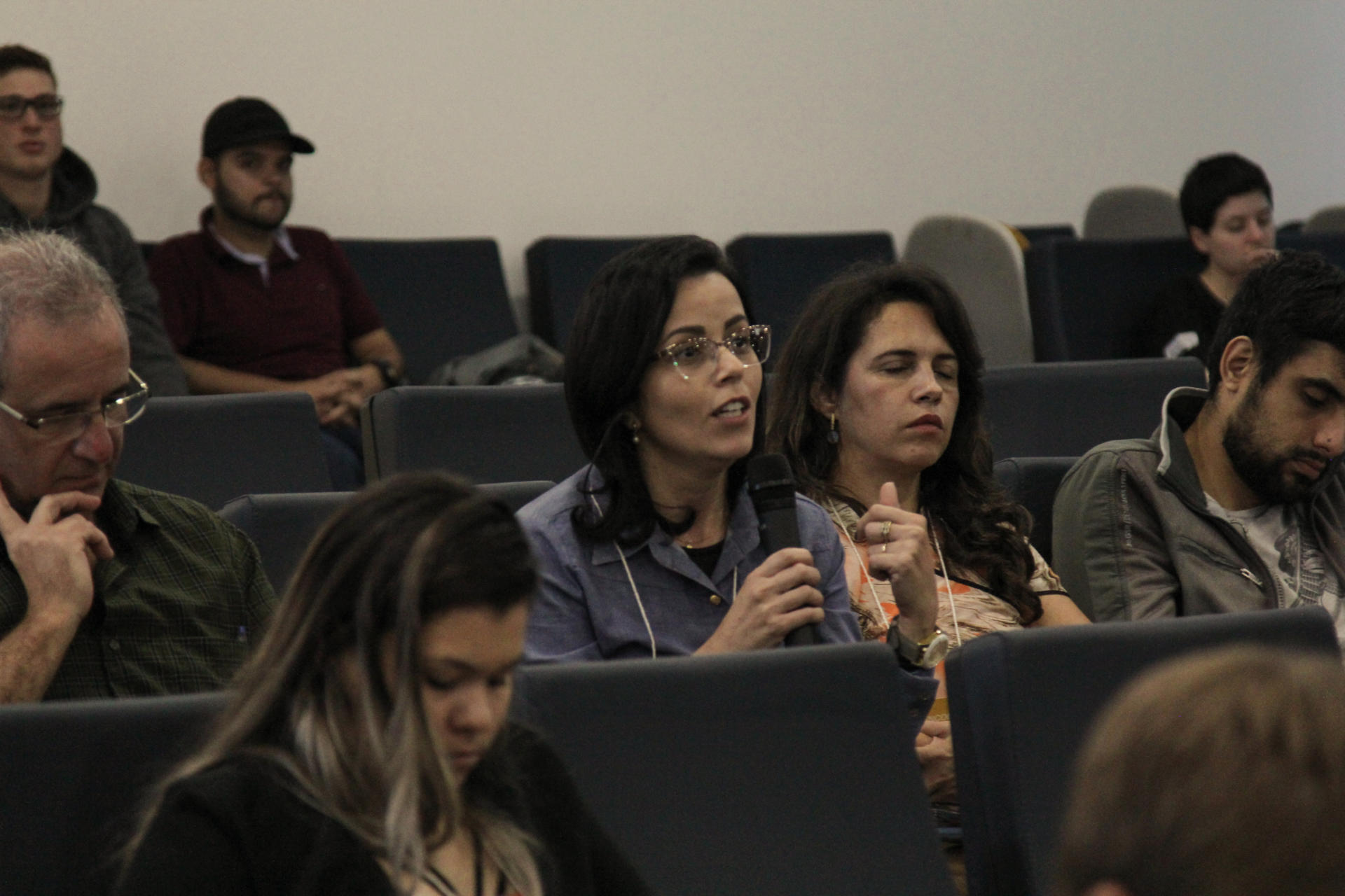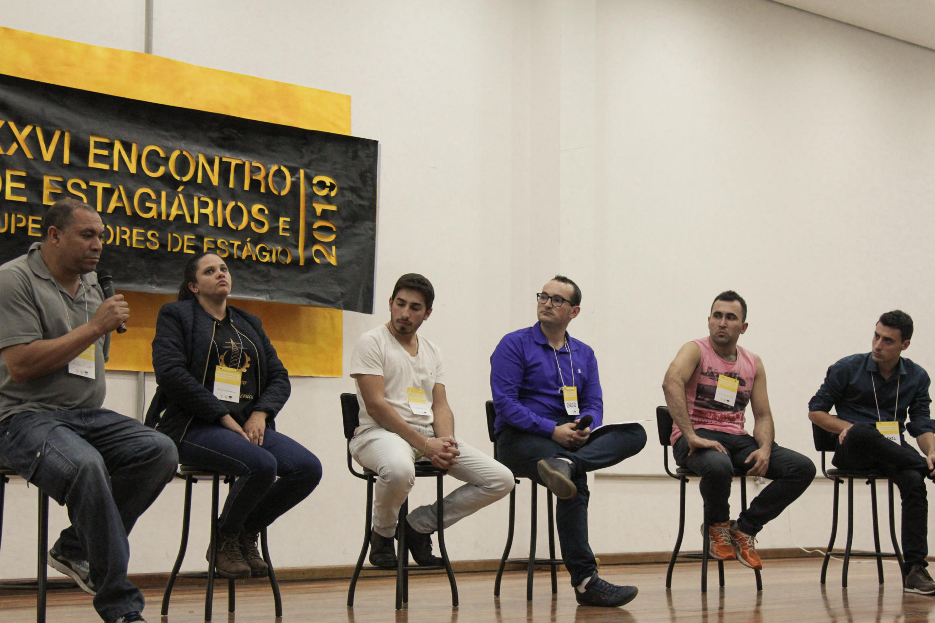 Depois do Coffee Break, foi a vez de ex-alunos e atuais alunos dos cursos noturnos compartilharem as suas experiências, falando sobre as suas experiências de estágio e o que encontraram no mercado de trabalho.