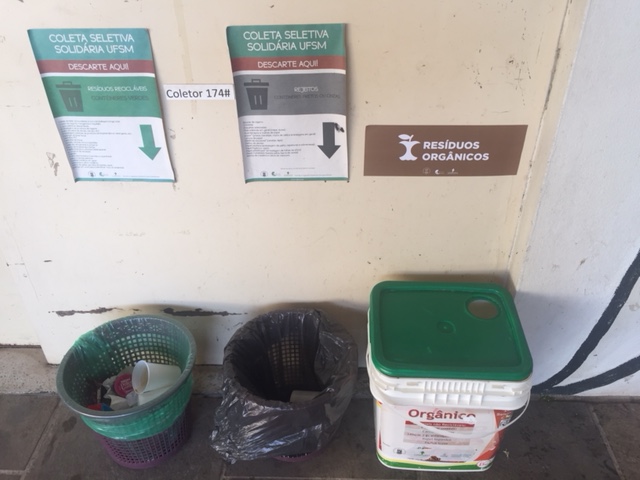 Um ponto de coleta de resíduos orgânicos foi instalado próximo às mesas do espaço aberto do CTISM, em frente à antiga sala do diretor. Sobras de alimentos, cascas, folhas e erva mate são alguns dos resíduos coletados neste ponto, que é um dos diversos espalhados pela UFSM. Após a realização da coleta, que acontece por volta das 14h todos os dias, os resíduos orgânicos são levados às dependências do Colégio Politécnico, onde são misturadas pelos equipamentos da Usina de Compostagem do Poliécnico, coordenada pelo Professor Maurício Tratsch. A compostagem obtida é utilizada nos setores de jardinocultura, silvicultura, olericultura e fruticultura, sendo de suma importância pela devolução dos nutrientes ao solo. Para mais informações acesse http://coral.ufsm.br/coletaseletiva/.
