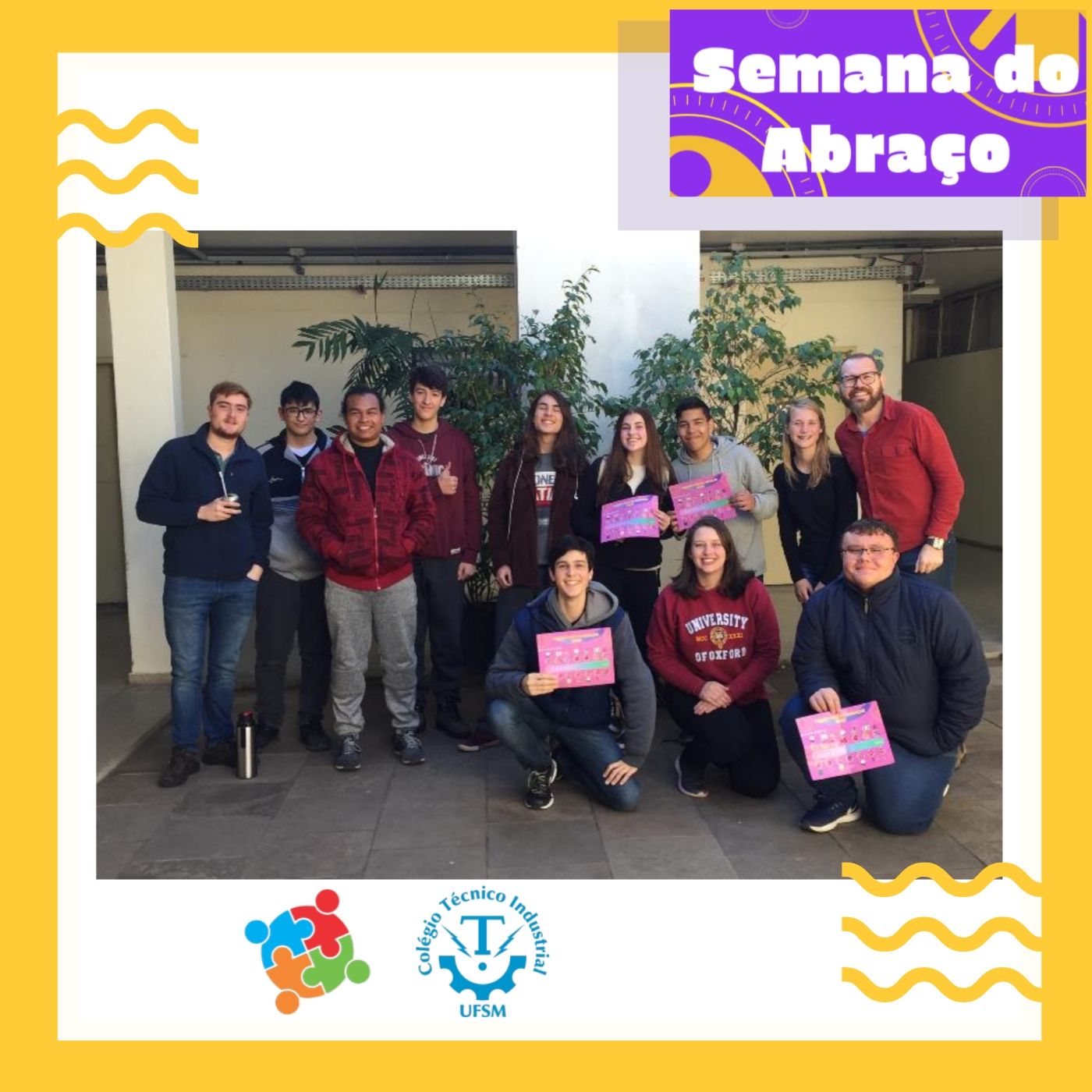 Na última semana, o Projeto Piloto de Acompanhamento Pedagógico do CTISM vem mobilizando os estudantes dos Cursos Técnicos Integrados ao Ensino Médio a participarem da ação “Semana do Abraço: Um abraço recarrega energias”. Idealizada pelos integrantes do Projeto, a Semana do Abraço tem como objetivo promover a integração entre os alunos e os membros do projeto e incentivar a procura ao Apoio Pedagógico pelos estudantes.