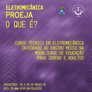 Inscrições abertas para o Processo Seletivo Eletromecânica PROEJA 2021