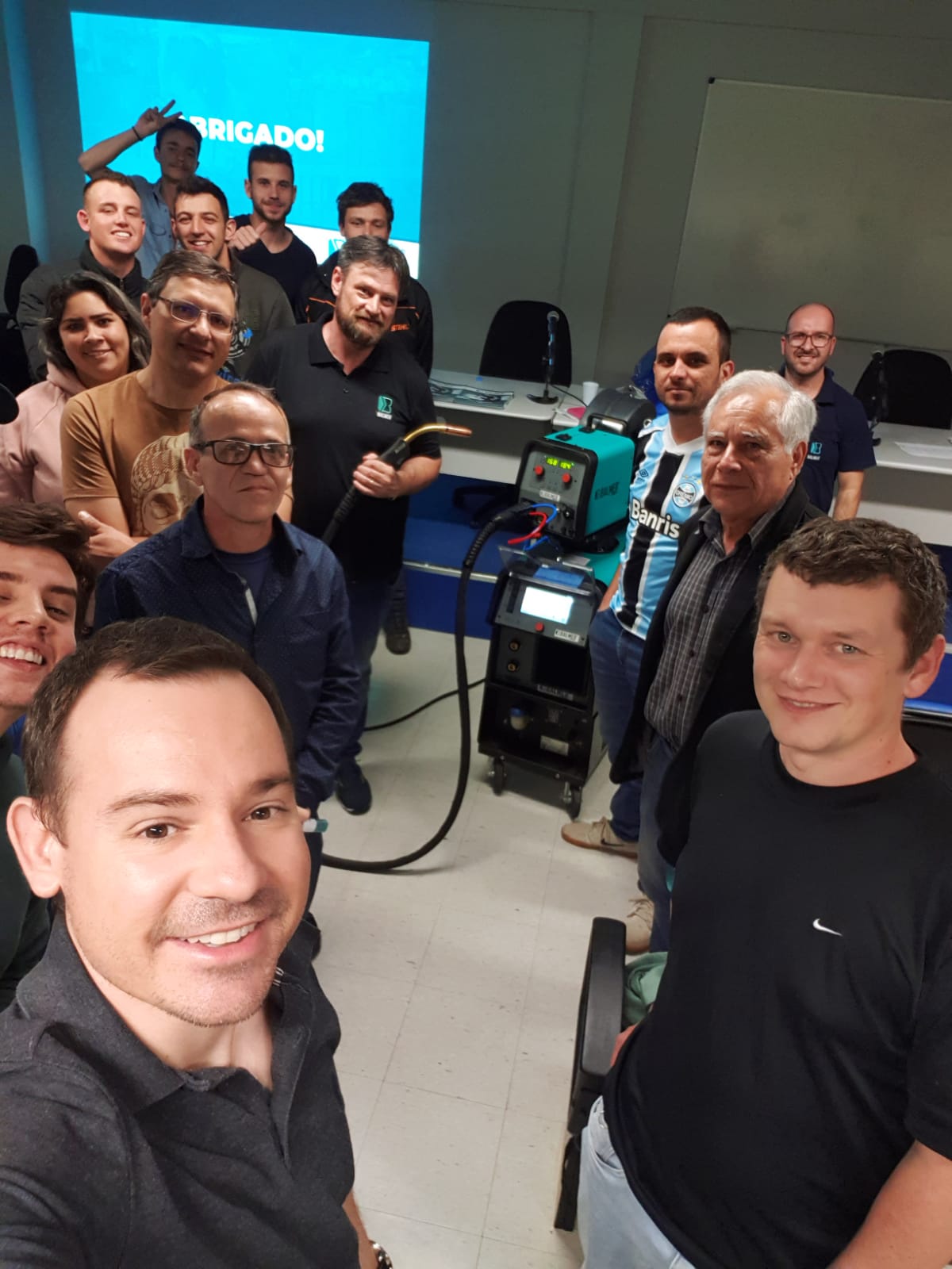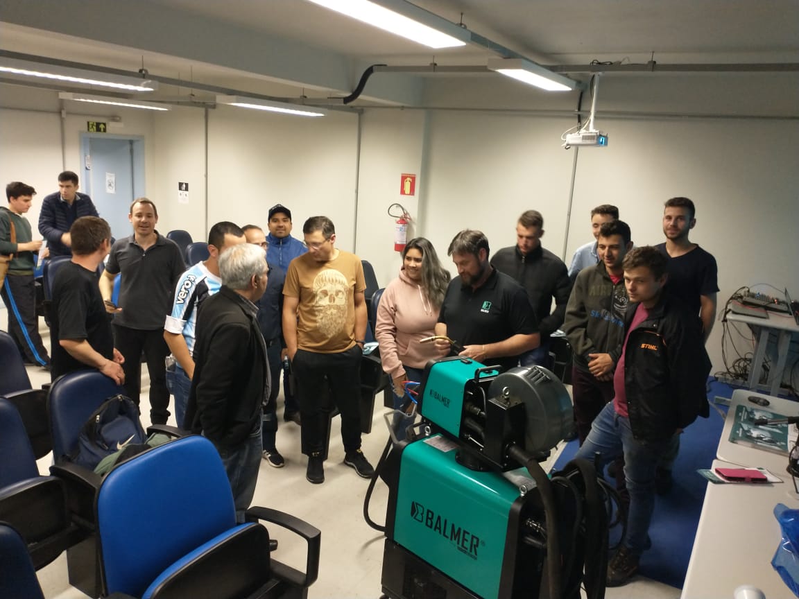 Como no caso da palestra da empresa Balmer, em que a empresa trouxe uma fonte multiprocesso de soldagem que hoje em dia é uma das fontes de soldagem mais modernas no Brasil e os alunos tiveram a oportunidade de conhecer.