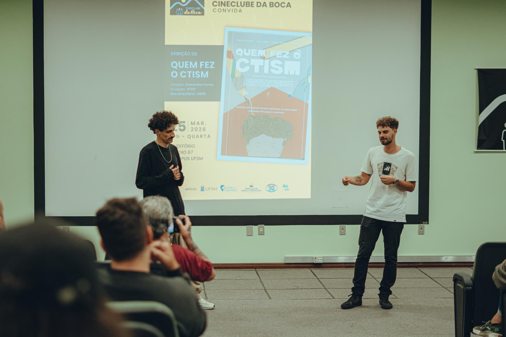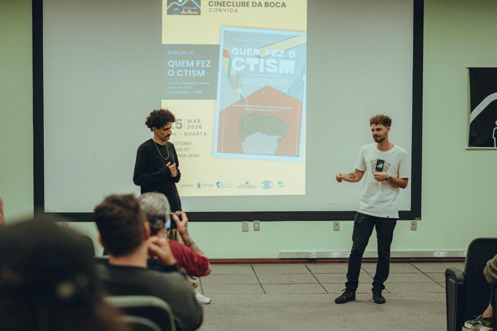 Na quarta-feira, dia 25 de março, o Cineclube da Boca, localizado no prédio 67, deu início às suas sessões de 2026 com uma exibição muito especial e cheia de significado. A abertura da programação contou com a apresentação do documentário “Quem fez o CTISM”, uma produção que cativou o público presente.