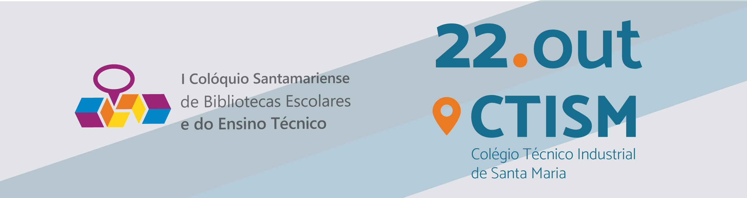 O I COLÓQUIO SANTA MARIENSE DE BIBLIOTECAS ESCOLARES E DO ENSINO TÉCNICO é um projeto de extensão que tem por objetivo dar visibilidade às ações desenvolvidas nas bibliotecas de ensino técnico do SiB-UFSM, bem como promover o debate e a troca de informações entre as bibliotecas da rede pública e privada da cidade de Santa Maria. A intenção é envolver os diferentes públicos das bibliotecas escolares: alunos, professores e bibliotecários em ações que buscam dar visibilidade ao espaço das bibliotecas e preparar os grupos de interesse ao uso desse espaço. No período da tarde, os participantes poderão optar entre cinco opções de temáticas para participar das rodas de conversa.