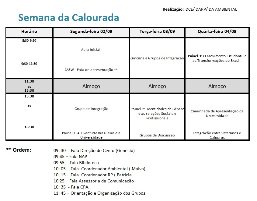 Acontece dos dias 02 a 04 de setembro a Calourada 2013/2 da UFSM campus Frederico Westphalen unidade CESNORS.