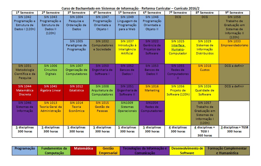 A nova matriz curricular atende a proposta do Parecer 136/2012 do CNE/CES, que apresenta as Diretrizes Curriculares Nacionais para os Cursos de Graduação em Computação. Acesse o novo currículo aqui.