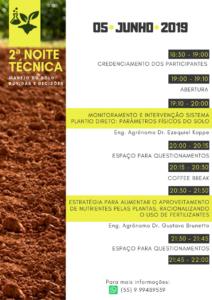 O grupo PET Ciências Agrárias da UFSM-FW realizará, no dia 05 de junho, a II Noite Técnica. Nesta edição, a temática é Manejo de Solo: Dúvidas e Decisões. O evento ocorrerá no Auditório da URI/FW (Prédio 7) das 18h30 às 22h00.