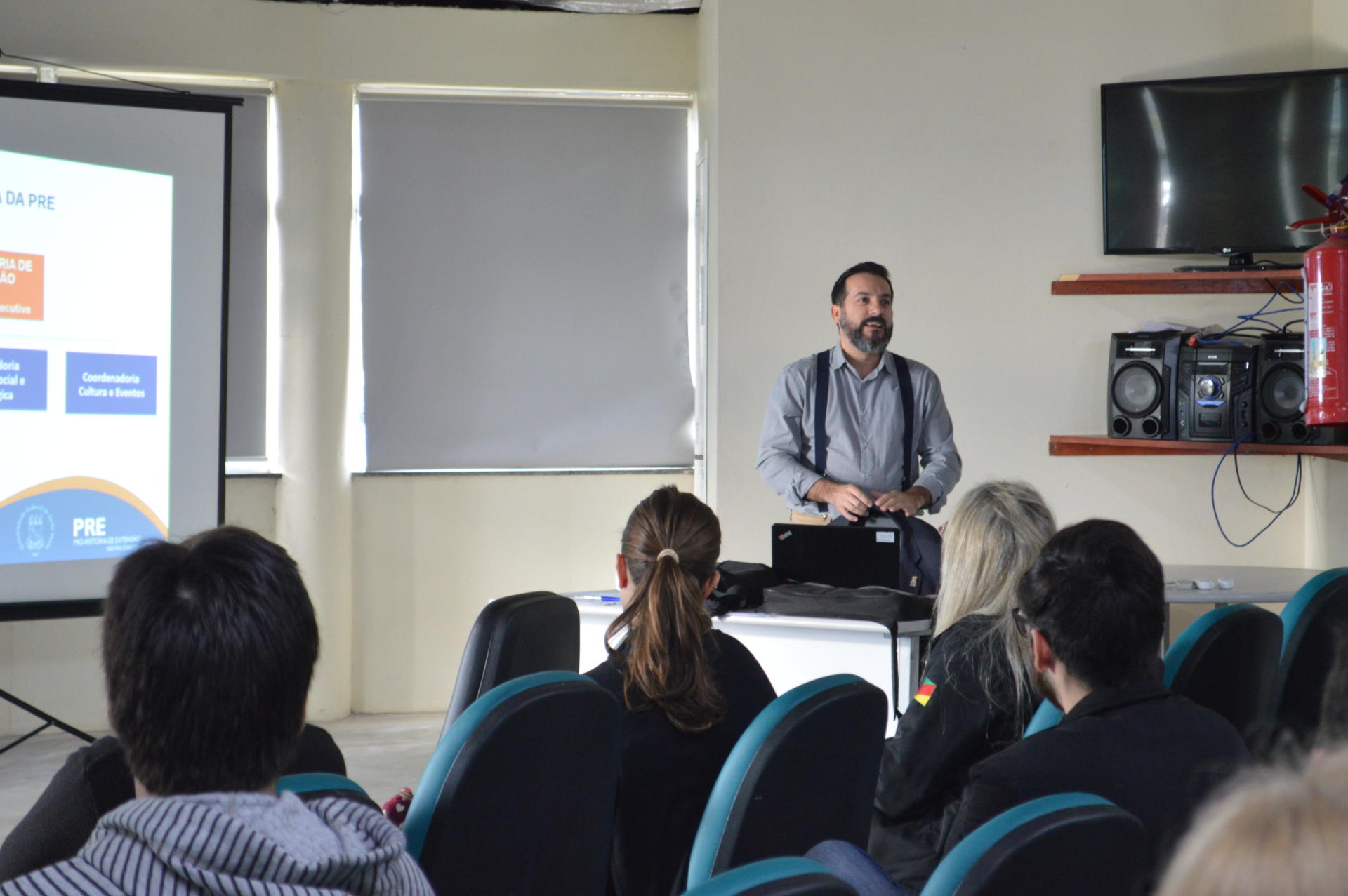 Os campi da UFSM em Frederico Westphalen e Palmeira das Missões receberam na última sexta, 28, a Pró-Reitoria de Extensão para discutir o novo sistema que orienta as ações externas desenvolvidas pela UFSM. O evento foi conduzido pelo pró-reitor de Extensão, Flavi Lisboa, e contou com a presença de professores, técnicos e estudantes dos campi.