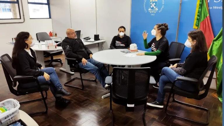 No dia de hoje, as Diretoras da Seção Sindical dos Docentes da Universidade Federal de Santa Maria (SEDUFSM), Liane Weber e Marcia Morschbacher, se reuniram com o Diretor do Campus, Braulio Otomar Caron, e com a Coordenadora Administrativa, Terezinha Pôncio.