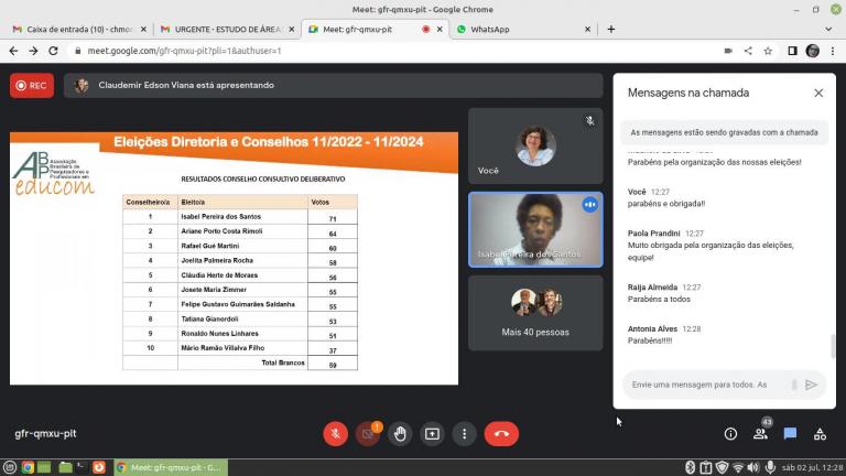 As eleições para definir a nominata para Diretoria Executiva, Conselho Consultivo Deliberativo e Conselho Fiscal da Associação Brasileira de Pesquisadores e Profissionais em Educomunicação foram realizadas de maneira virtual no dia 02 de julho. A ABPEducom tem caráter educativo, científico-cultural, interdisciplinar, de âmbito nacional e não possui fins lucrativos.