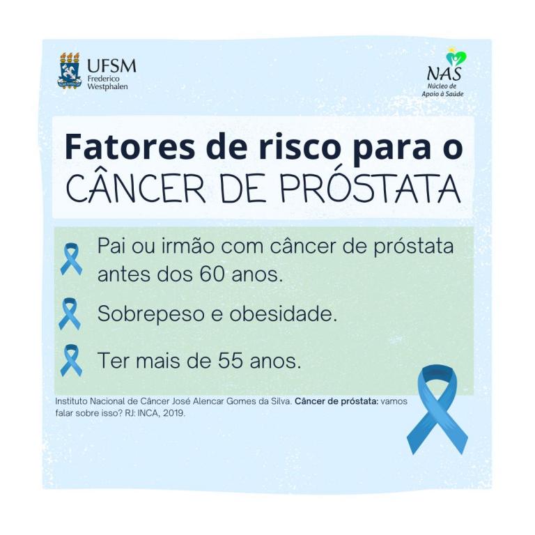Durante o mês de Novembro, o NAS (Núcleo de Apoio a Saúde) da UFSM/FW realizou a conscientização da comunidade acadêmica referente ao Novembro Azul, mês em combate ao câncer de próstata. As atividades foram realizadas por meio de posts nas redes sociais do NAS, além de folders e um painel disponíveis no hall de entrada do campus com orientações de cuidados e prevenções sobre a doença.