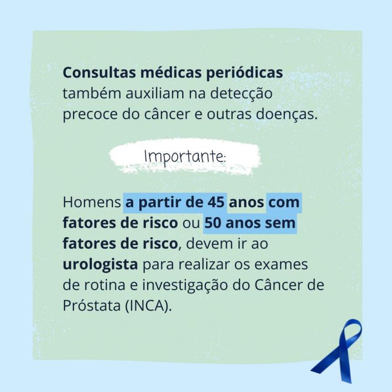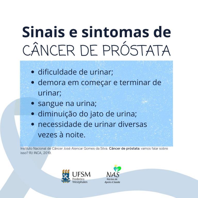 A enfermeira Fernanda, ressalta algumas principais informações sobre a doença: “O câncer de próstata, inicialmente, não apresenta sintomas. Quando sinais e sintomas aparecem, a doença já está mais avançada. Por isso a importância dos exames periódicos (toque e PSA) feitos por médico urologista. Deve-se também estar atento aos primeiros sintomas de um possível câncer de próstata, como dor ao urinar, redução do volume de urina, vontade de urinar com frequência e sangramento uretral.”