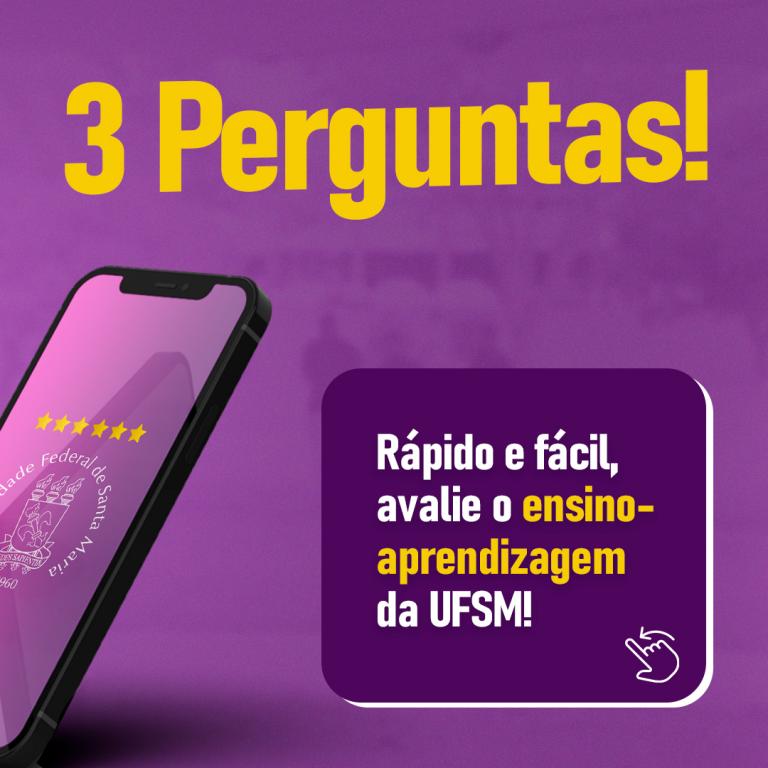 Estudantes da UFSM podem avaliar as disciplinas do segundo semestre letivo de 2022 a partir desta segunda-feira (23). A Avaliação Ensino-Aprendizagem, disponível no aplicativo UFSM Digital e no Portal do Aluno, segue até 31 de março.