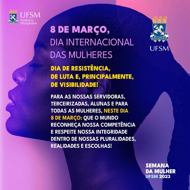 A UFSM/FW homenageia nesta data especial todas as mulheres e reconhece a resistência, a luta e a visibilidade do feminino no mundo.