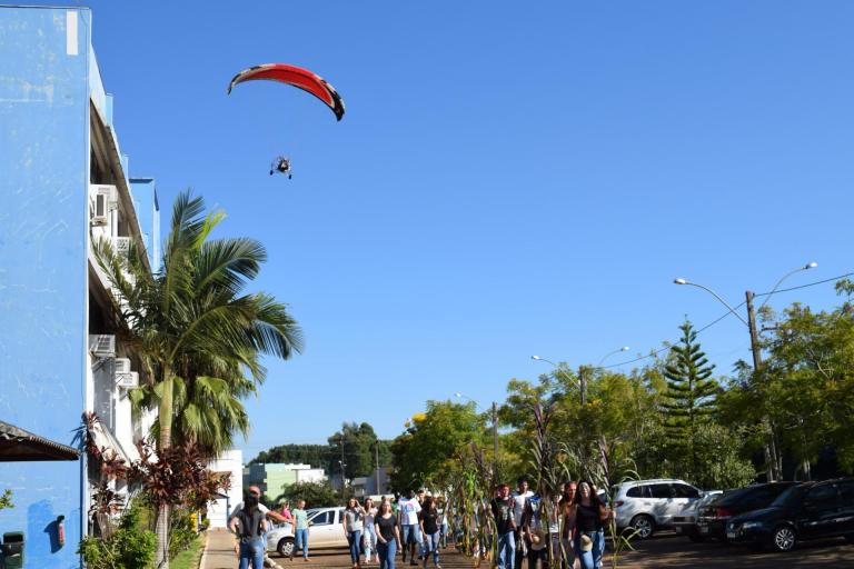 Na segunda-feira de hoje, as atividades começaram pela manhã com uma surpreendente surpresa que chegou diretamente do céu para alegrar o dia de toda a comunidade acadêmica presente no Centro de Convivências da universidade. Algumas empresas de Frederico Westphalen também marcaram presença na ação, trazendo oportunidades e entretenimento.