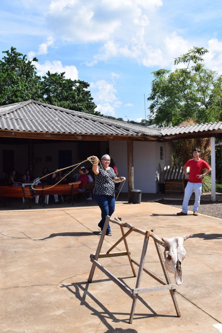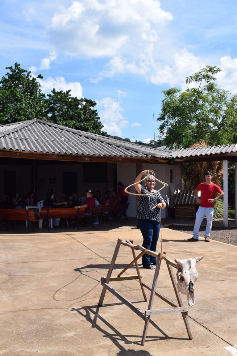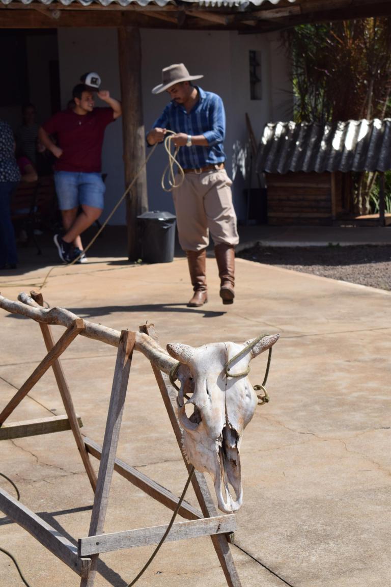 A programação da Semana da Calourada do Campus, nesta quarta-feira, 22 de março, ofereceu um momento cultural com o Departamento de Tradições Gaúchas (DTG), da cidade. Os acadêmicos participaram da “mateada”, música ao vivo, laço em vaca parada e também puderam aproveitar as informações, brindes e atrativos das empresas de Frederico Westphalen disponíveis pelo espaço. Luciano Schuch, Reitor da UFSM, e outras autoridades estiveram presentes nesse momento.