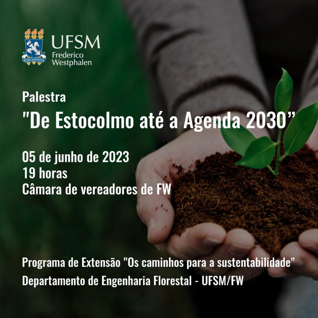 O Dia Mundial do Meio Ambiente, comemorado nesta próxima segunda-feira (05), será celebrado com uma Palestra na Câmara Municipal de Vereadores. O evento tem como tema “De Estocolmo até a Agenda 2030”, e será realizado pelo coletivo de alunos e docentes do Programa de Extensão “Caminhos para a sustentabilidade”, do Departamento de Engenharia Florestal da UFSM, campus Frederico Westphalen. O objetivo do evento é dialogar com a comunidade sobre os desafios ambientais dos próximos anos e propor um ambiente de troca de experiências entre os participantes.