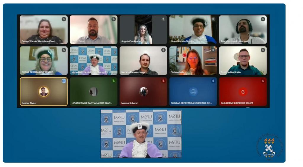Aconteceu, na noite de hoje (3), a colação de grau da segunda turma do Curso de Licenciatura em Computação EaD, do Campus da Universidade Federal de Santa Maria em Frederico Westphalen (UFSM/FW). A solenidade foi realizada por meio de videoconferência, e conferiu o grau de Licenciado(a) em Computação a sete alunos(as), dos polos de Três de Maio, Cachoeira do Sul, Tio Hugo e Jacuizinho. O grau foi outorgado pelo Coordenador do Curso, Sidnei Renato Silveira.