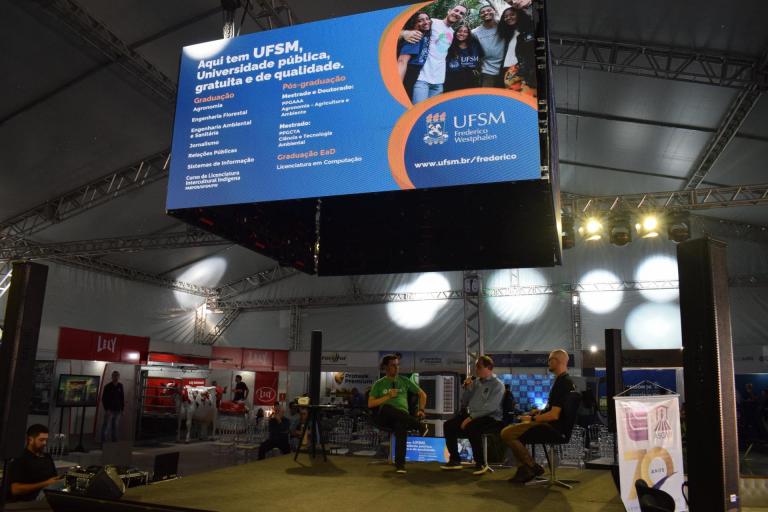 Continuando na pauta de incentivos ao turismo, o palco deu espaço a uma roda de conversa composta por Fernando Panno, também professor e pesquisador da UFSM e Joel. Nesse momento, destacaram-se os impactos positivos da plataforma para o turismo regional, e consequentemente também na economia. Segundo Joel, o projeto desenvolvido junto a UFSM/FW tem como base “Registrar os potenciais turísticos da região, como forma de facilitar o acesso para que as pessoas que chegam na nossa região consigam conhecer esses locais”. O uso das tecnologias como aliadas no dia a dia de diversas profissões também foi um dos temas abordados, segundo Panno “não existe uma profissão que não use diretamente, ou indiretamente, a tecnologia”.