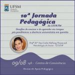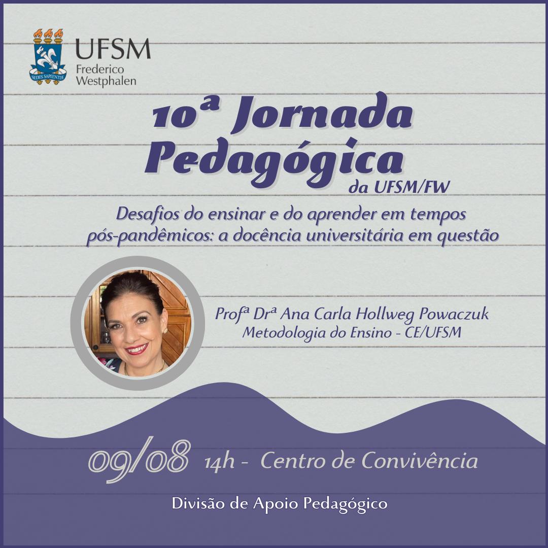 O evento terá como tema “Desafios do Ensinar e do Aprender em tempos pós-pandêmicos: a docência universitária em questão”, com a convidada Profª Drª Ana Carla Hollweg Powaczuk, do Departamento de Metodologia do Ensino do Centro de Educação da UFSM.